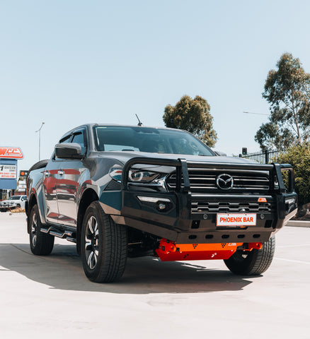 Phoenix bull bars that are commonly known is the 60mm tubing, 4 aerials tap, wider A Frame, and larger bumper overrider comparing the 50mm tubing and 2 aerials tap and standard size A Frame bumper overrider on the Falcon