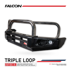 Dmax RT 2012-2016 707-01 Falcon Bull Bar Triple Stainless Loops Package (No Foglight) - SKU MCC-08002-701UP