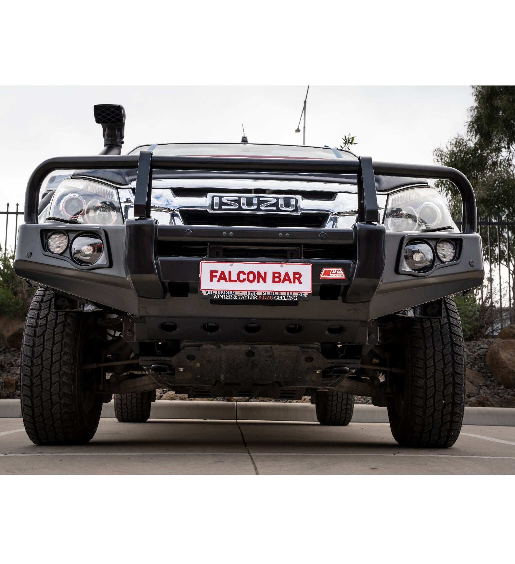 - Crafted from premium 3-5mm steel plate, the Falcon Bar is meticulously engineered to withstand the rigours of off-road exploration while maintaining its integrity and strength. This ensures long-lasting protection for your Isuzu, even in the most demanding terrains.