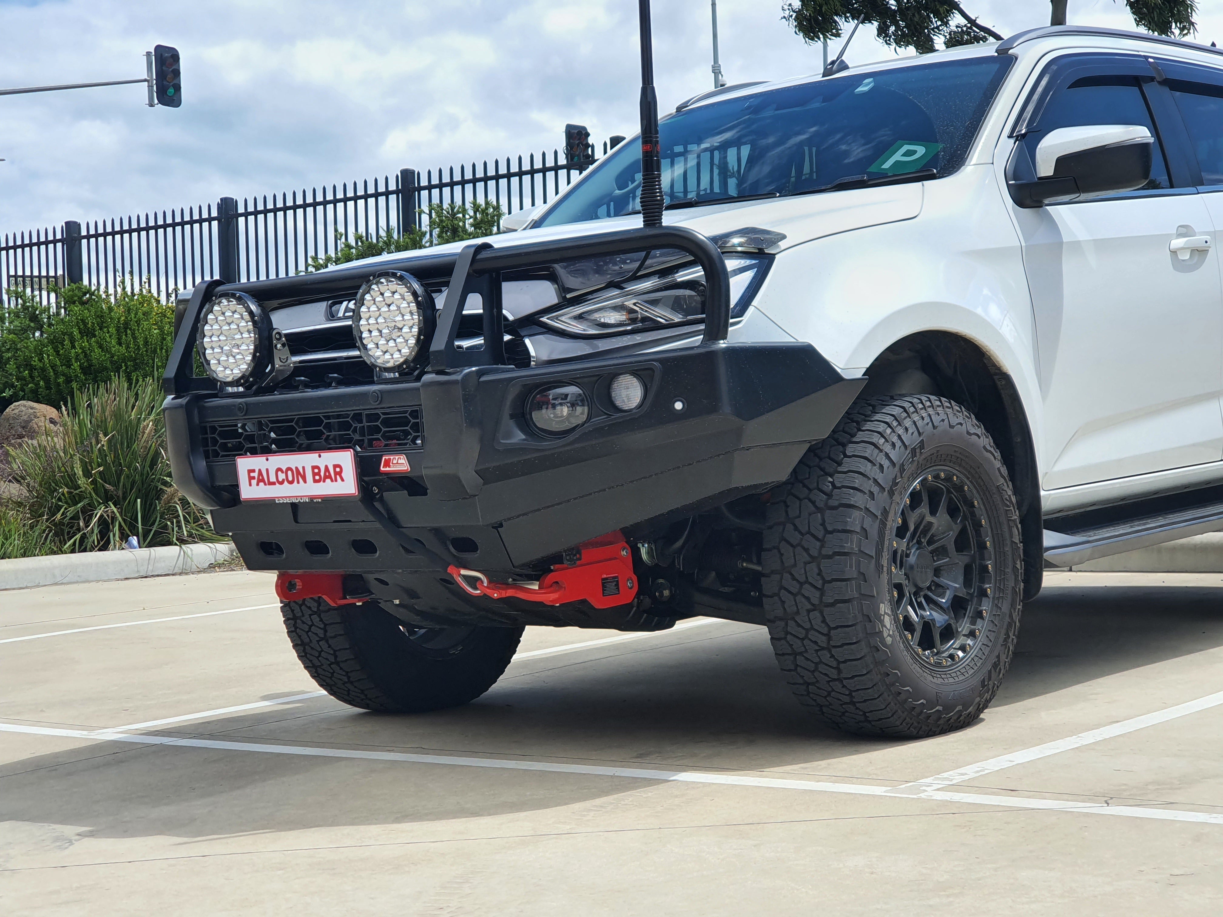 - Crafted from premium 3-5mm steel plate, the Falcon Bar is meticulously engineered to withstand the rigours of off-road exploration while maintaining its integrity and strength. This ensures long-lasting protection for your Isuzu, even in the most demanding terrains.