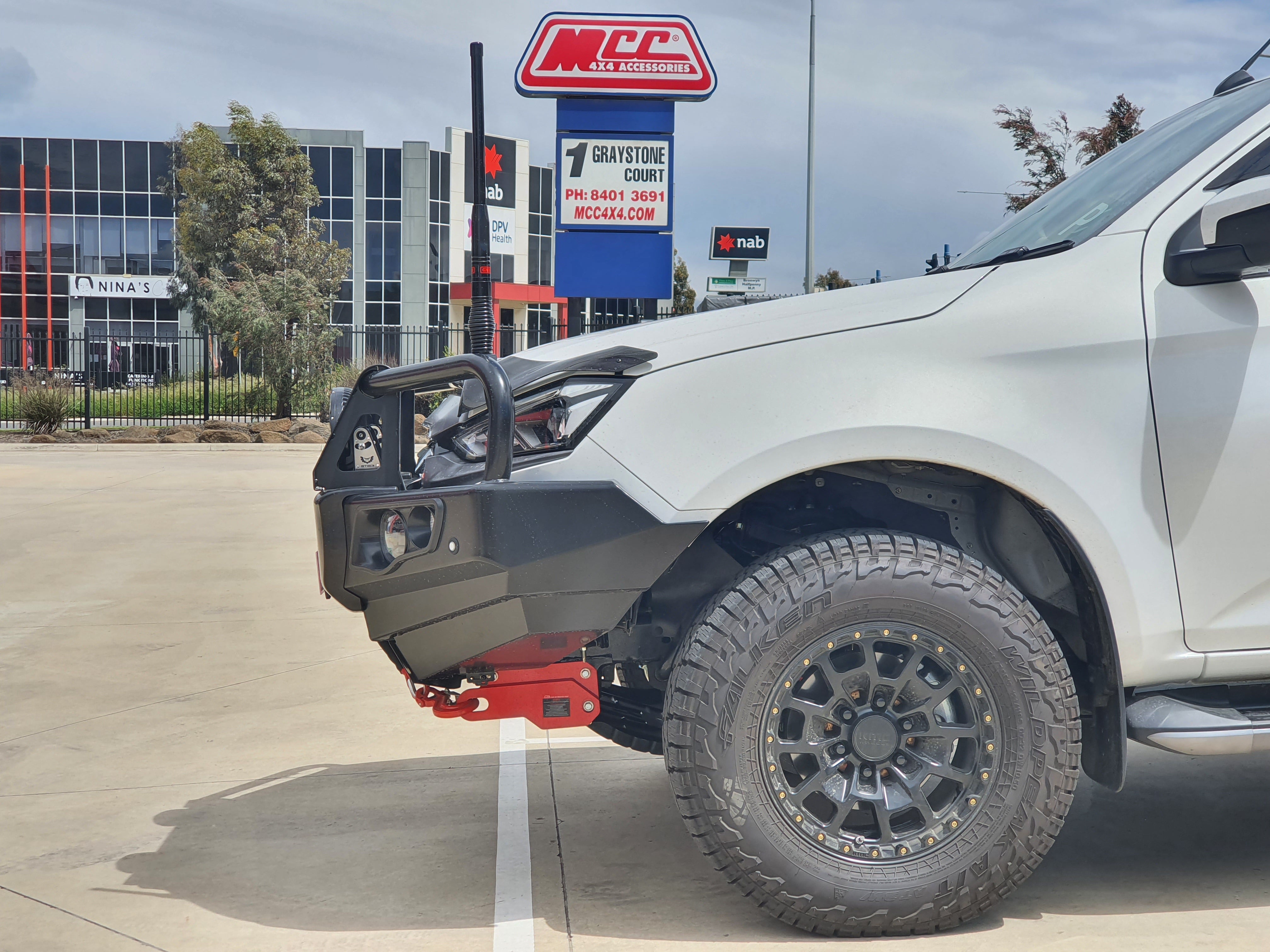 Elevate your Isuzu MU-X Gen 3 2020-present with the MCC 4x4 707-02 Falcon Bar A-Frame Bull Bar (08008-702UP), an icon renowned for its protection and stylish design.