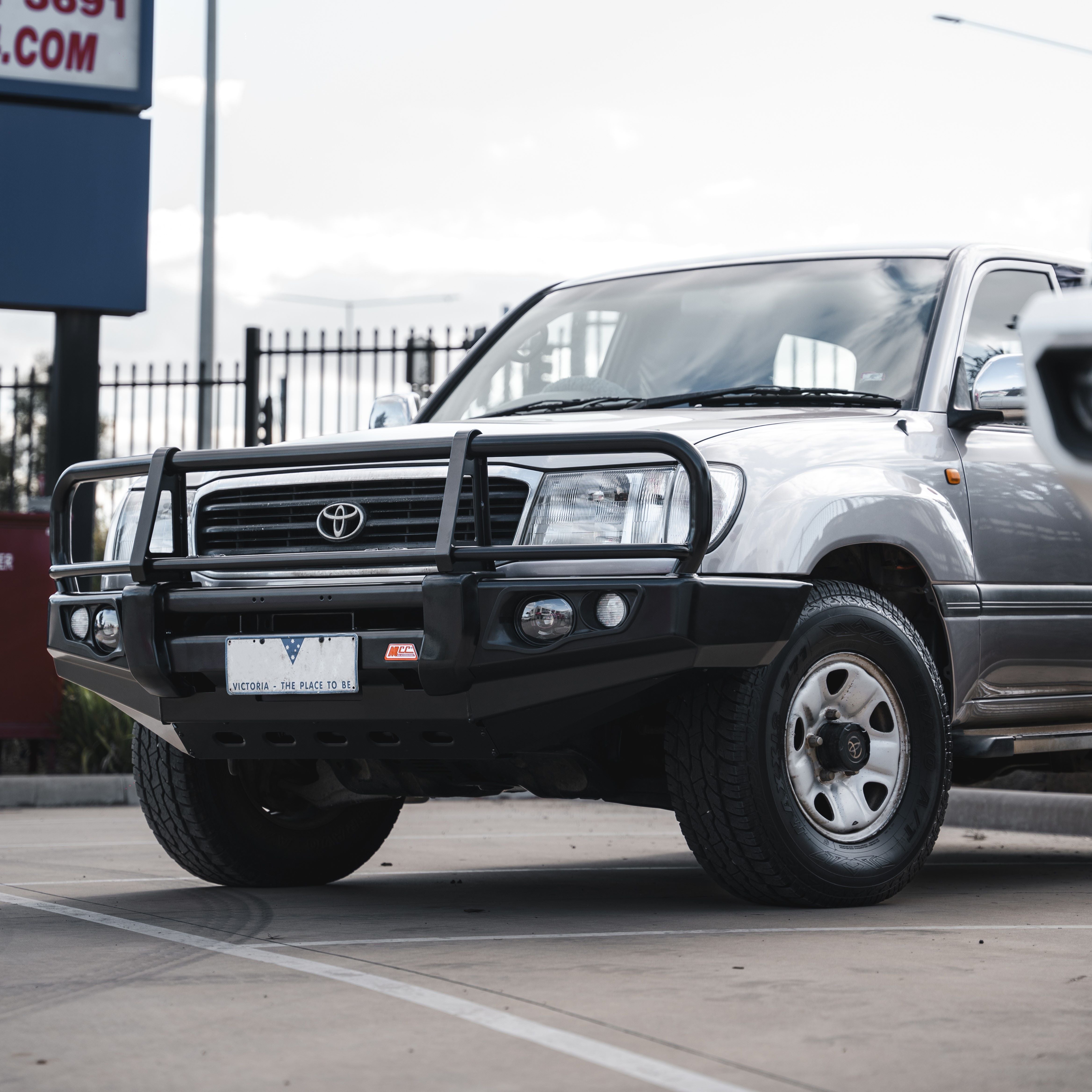 Outfit your Toyota Landcruiser 100 series with the 707-02 A-Frame Falcon Bar for unparalleled protection and style on every adventure.