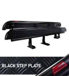 Combining strength and practicality, our ultra durable side steps are engineered to maximise your 4WD experience. Featuring double row tubing for essential undercarriage protection for your Toyota, these steps provide superior durability whilst maintaining convenience. Crafted with a robust 50.8mm diameter steel pipe with a 2mm thickness, they are built to handle tough conditions. With full ADR approval and a non-slip step plate, these steps ensure both safety and style. Optional side rails can be added thanks to removable end caps, making these side steps the ultimate choice for your Landcruiser.