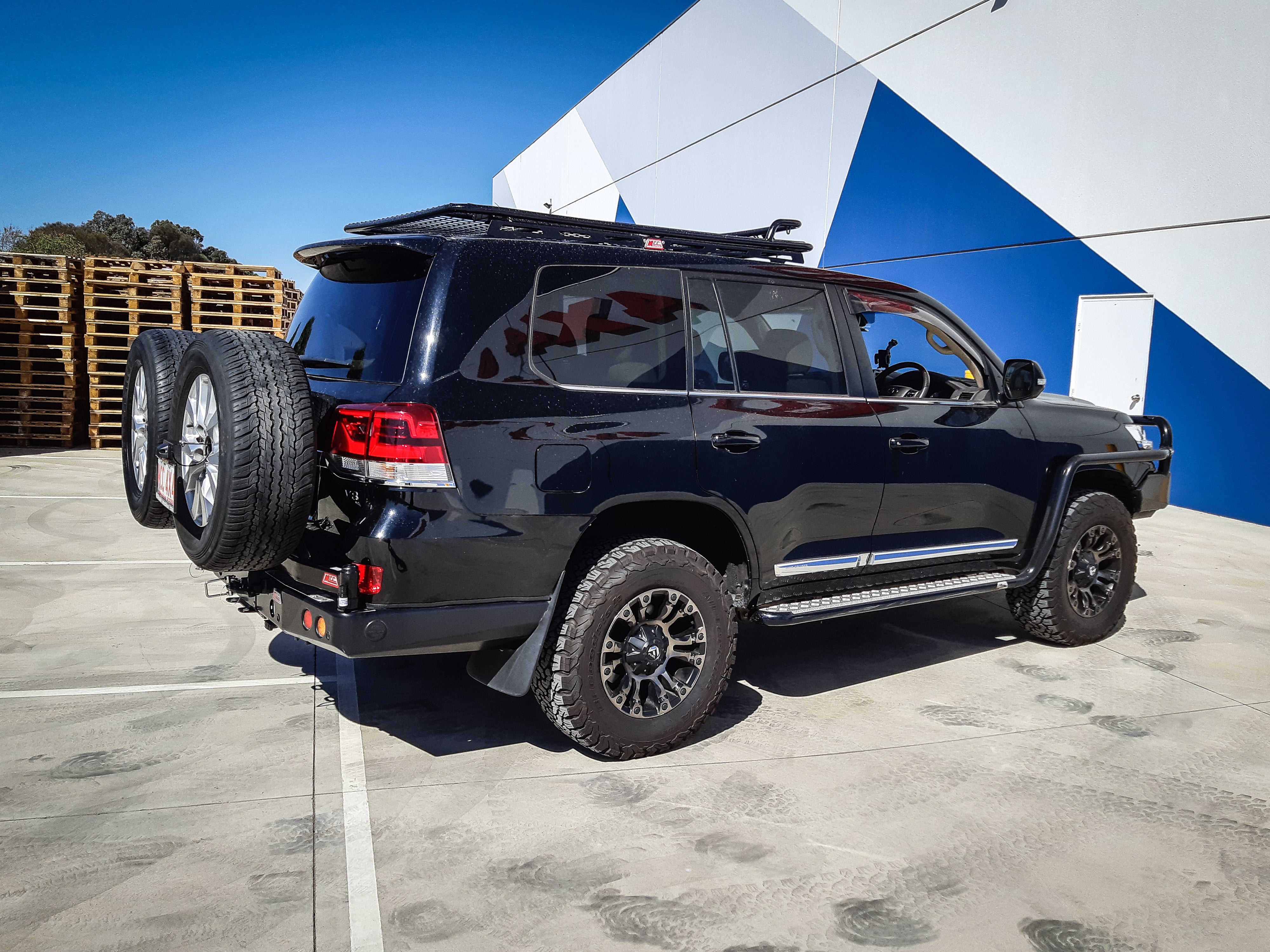 Upgrade your Toyota Landcruiser 200 series 07-21 (Bumper Cut) with the 022-02PK3 Dual Jerry and Single Wheel Carrier Rear Bar and experience the perfect blend of protection, storage, and practicality. Get ready to take on any adventure with confidence and style!