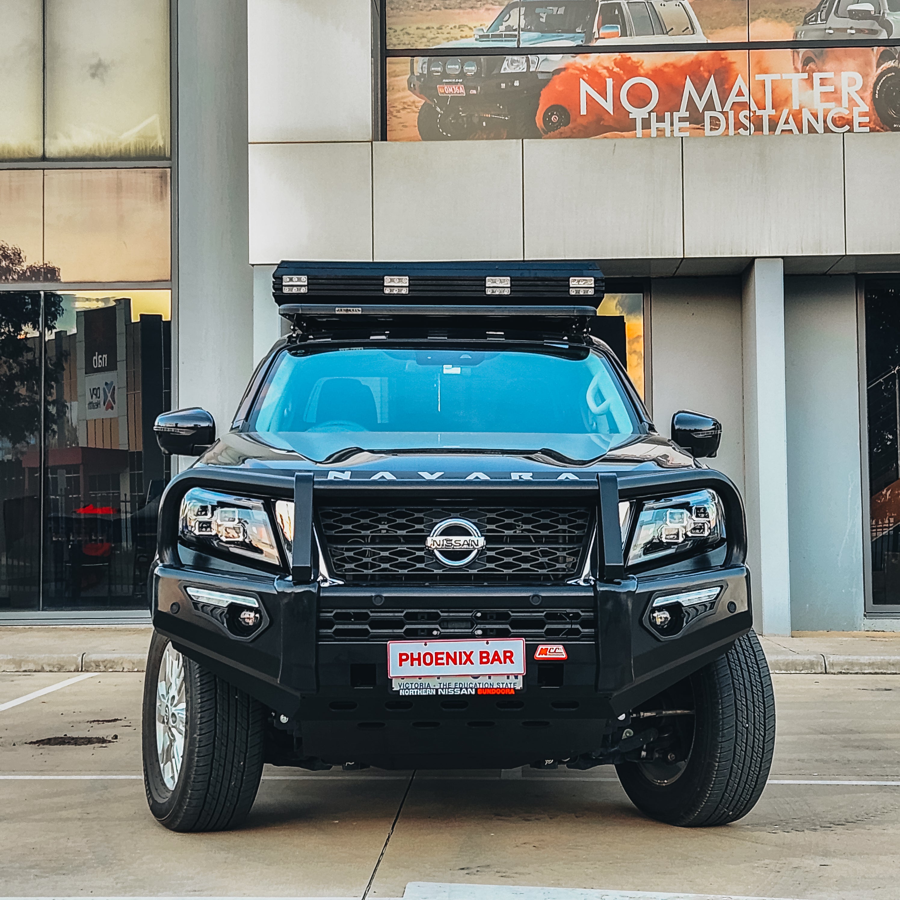 - Crafted from premium 3-5mm steel plates, the Phoenix Bar is meticulously engineered to withstand the rigours of off-road exploration while maintaining its integrity and strength. This ensures long-lasting protection for your Navara, even in the most demanding terrains.