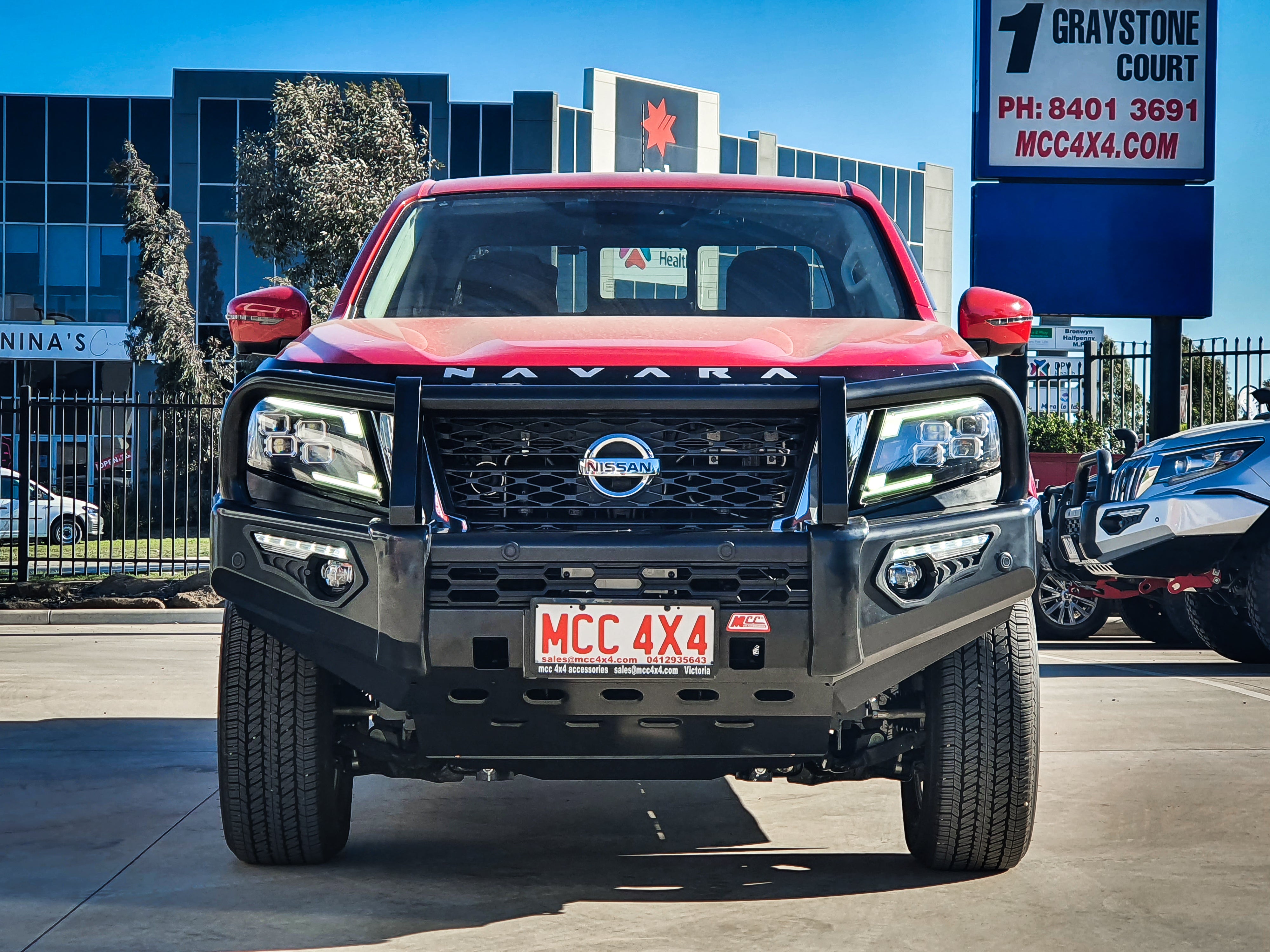 - Designed with a full bumper replacement style, the Phoenix Bar seamlessly integrates with your Nissan Navara’s front end, enhancing its appearance while providing maximum protection.