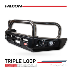 Toyota Hilux 1997-2004 707-01 Falcon Bull Bar Triple Stainless Loops Package (Foglight)