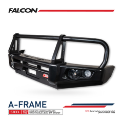- Engineered to meet the specific needs of off-road enthusiasts, the Falcon Bar comes complete with an Under Protection Plate, Bracket Kit, and Winch Cradle, offering a comprehensive solution for both functionality and style for your Mitsubishi Triton or Challenger.