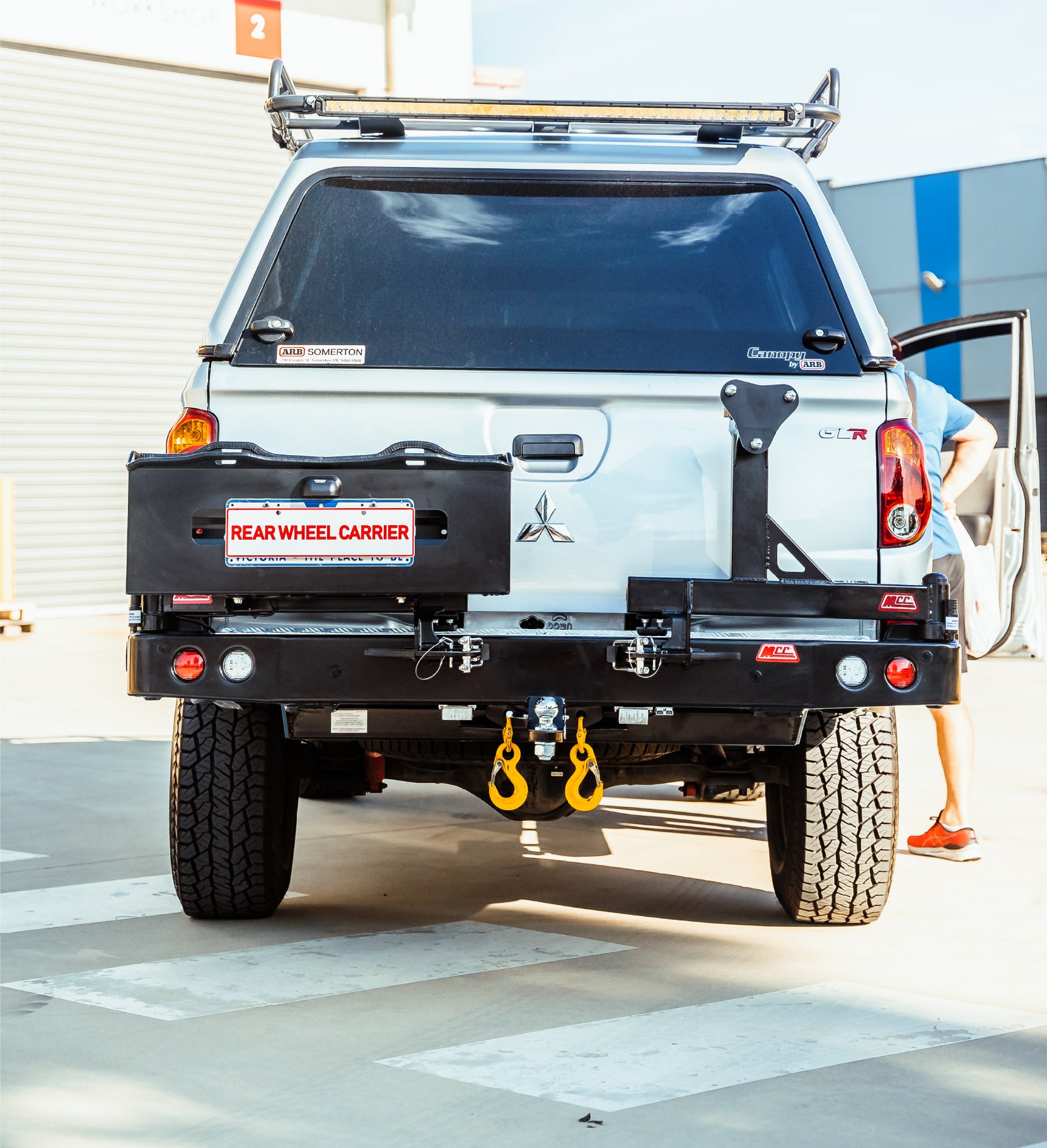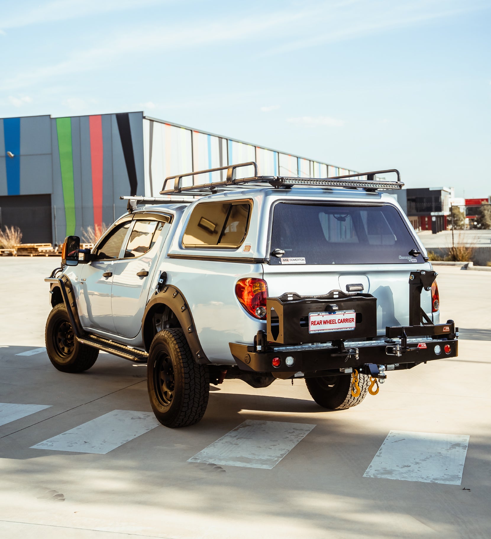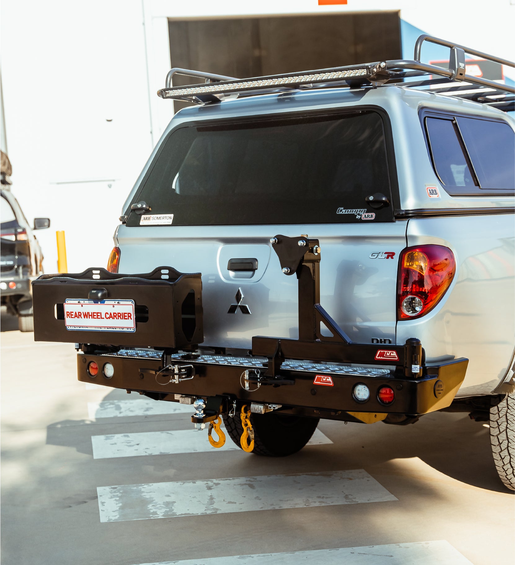 A Single Wheel / Double Jerry Carrier Rear Bar with removeable carrier arms is a worthy investment for your 4WD. It provides protection and space to keep your 4WD accessories. Single Wheel / DoubleJerry Carrier has the ability to carry a arm loaded with a 35" tire. With its fully welded through out the bar, this rear bar has the strength to carry a tire and a strong and durable jerries used to store fuel or water with full condence. If your goal is not just about protection but to save on storage space as well, this is a great option for you. Modern LED crystal parker, indicator and reverse lights are included in this rear bar.